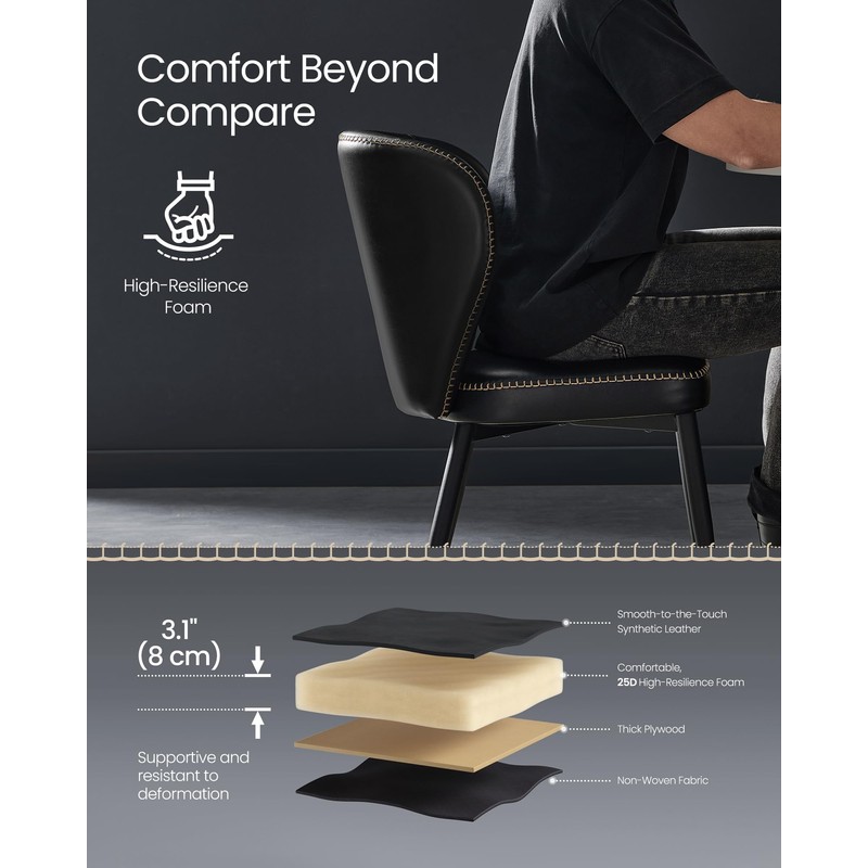 - [Redefine Comfort] Savor the comfort of these dining chairs. Its lightly curved back envelops you in a supportive embrace, while the 3.1" thick padded seat wrapped in soft-to-the-touch synthetic leather tempts you to linger, long after the meal is done