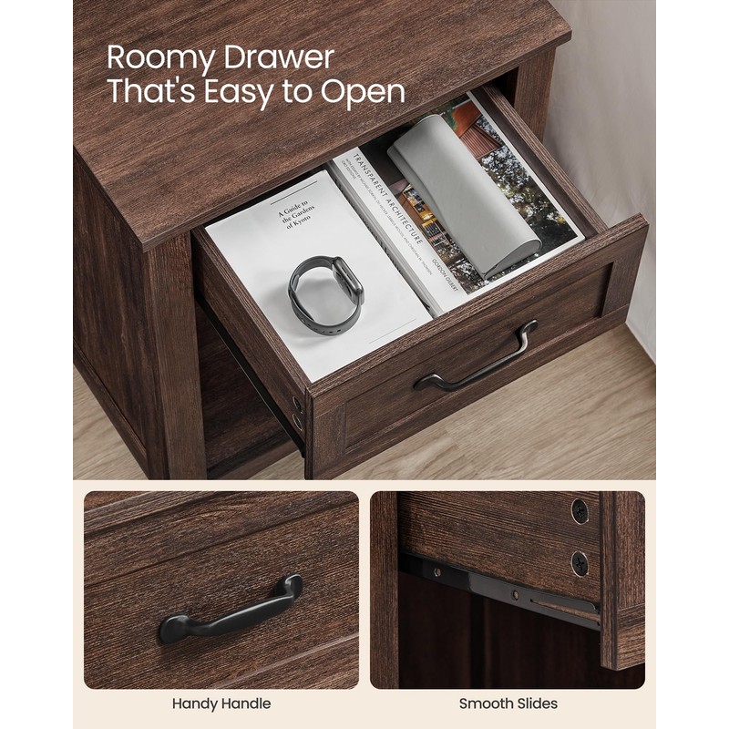 - [Plenty of Storage] With a spacious tabletop for your lamp or decorations, a drawer for odds and ends, and an open compartment for easy access to books or magazines, this end table brings convenience and order, enhancing any space it occupies