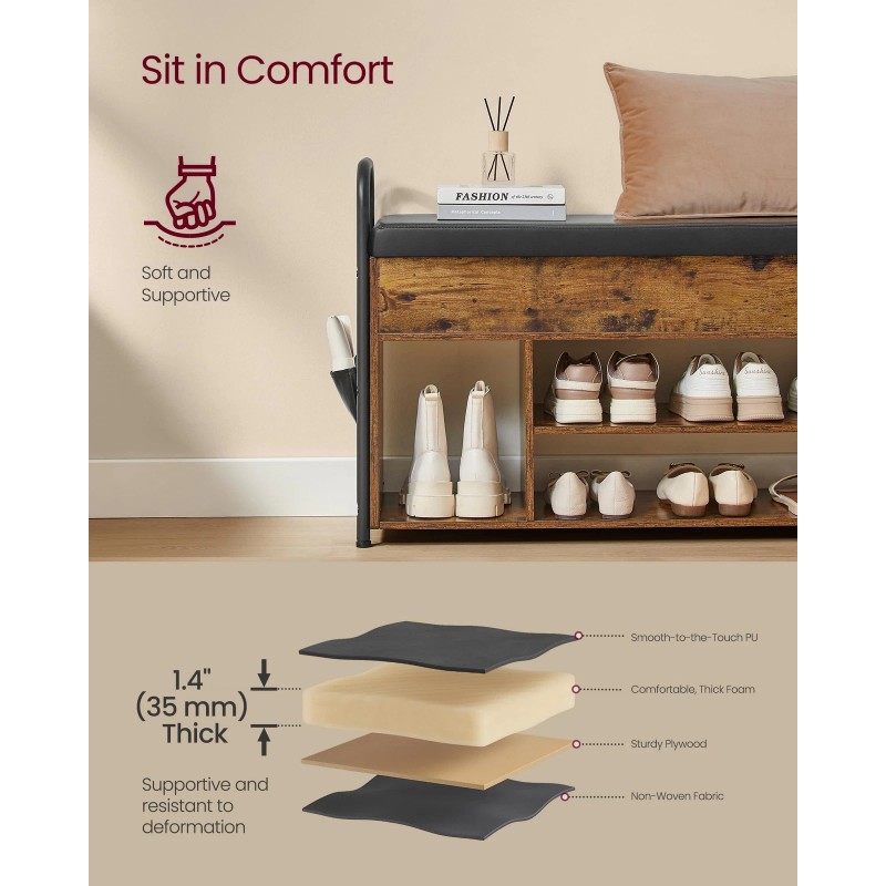 Vasagle Shoe Bench Shoe Rack 11.8D x 31.7W x 24.6H Rustic Brown + Ink Black