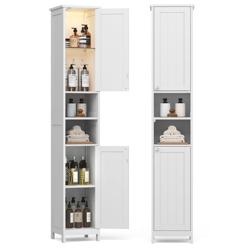 VASAGLE Tall Bathroom Cabinet with Lights, Slim Freestanding Bathroom Storage Cabinet with Adjustable Shelves, for Small Spaces, Modern, 11.8 Inches Wide, Cloud White UBBC566W02