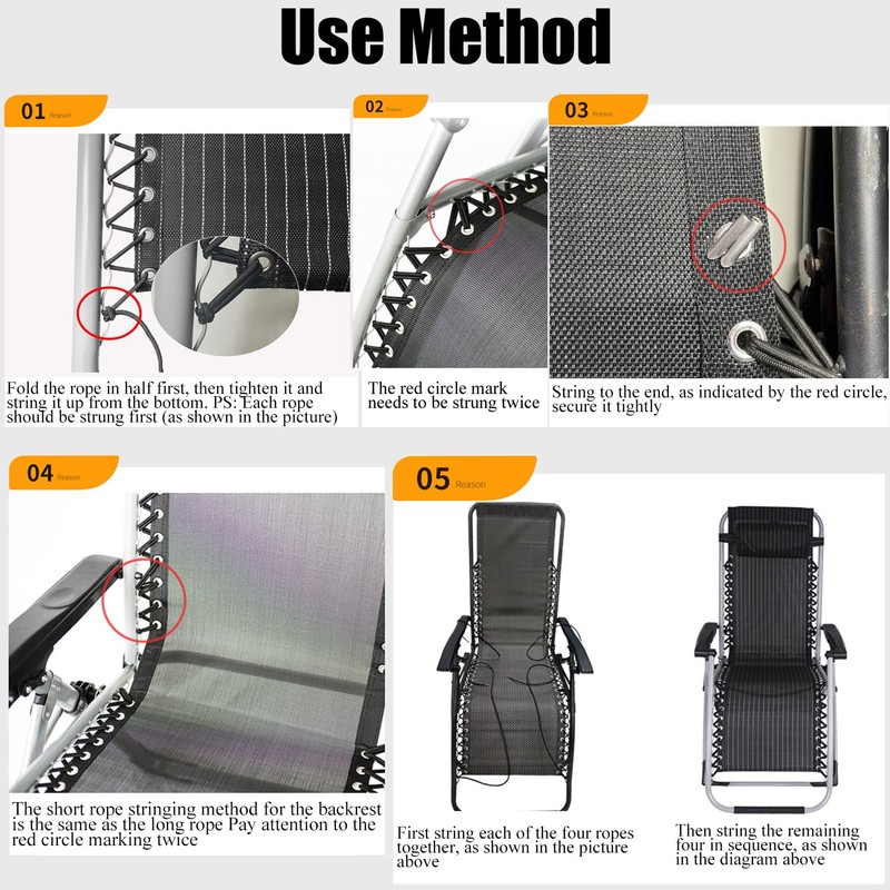 • Package Content: You will get 4 pieces of zero gravity chair replacement cord, include 2 long cords and 2 short cords
