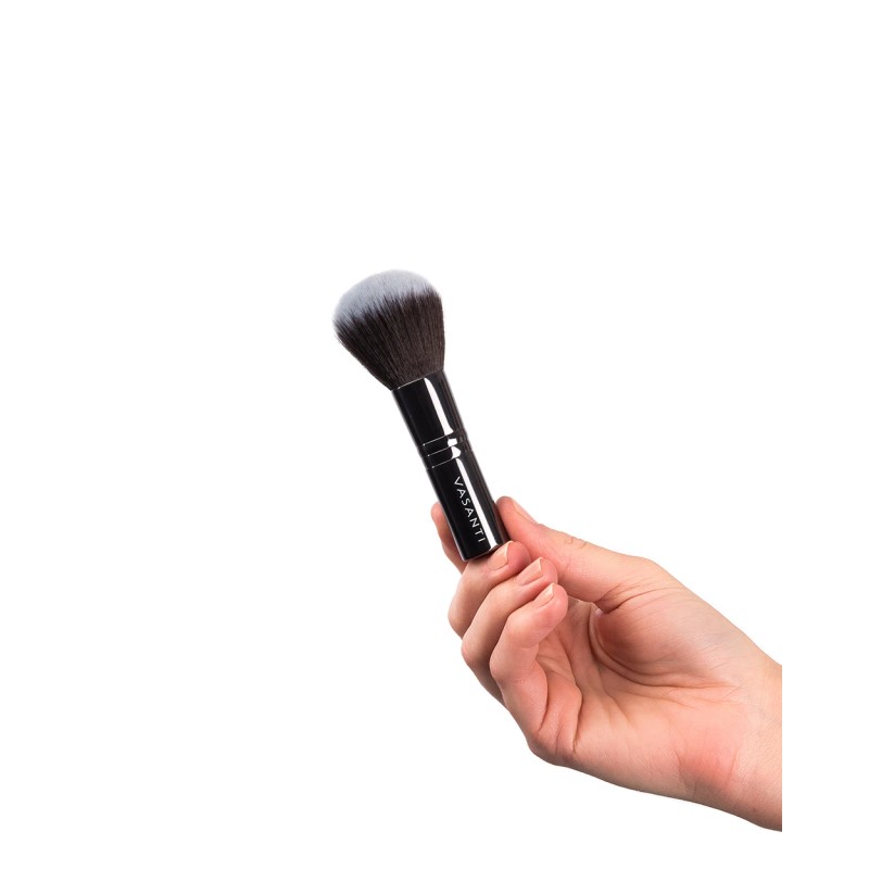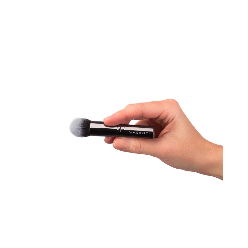 Get instant full coverage in just one swipe. That is the trick to a flat angled densely woven brush. Use this to apply your foundation or under eye concealer (cream or liquid). Best results with liquid or creamy products.