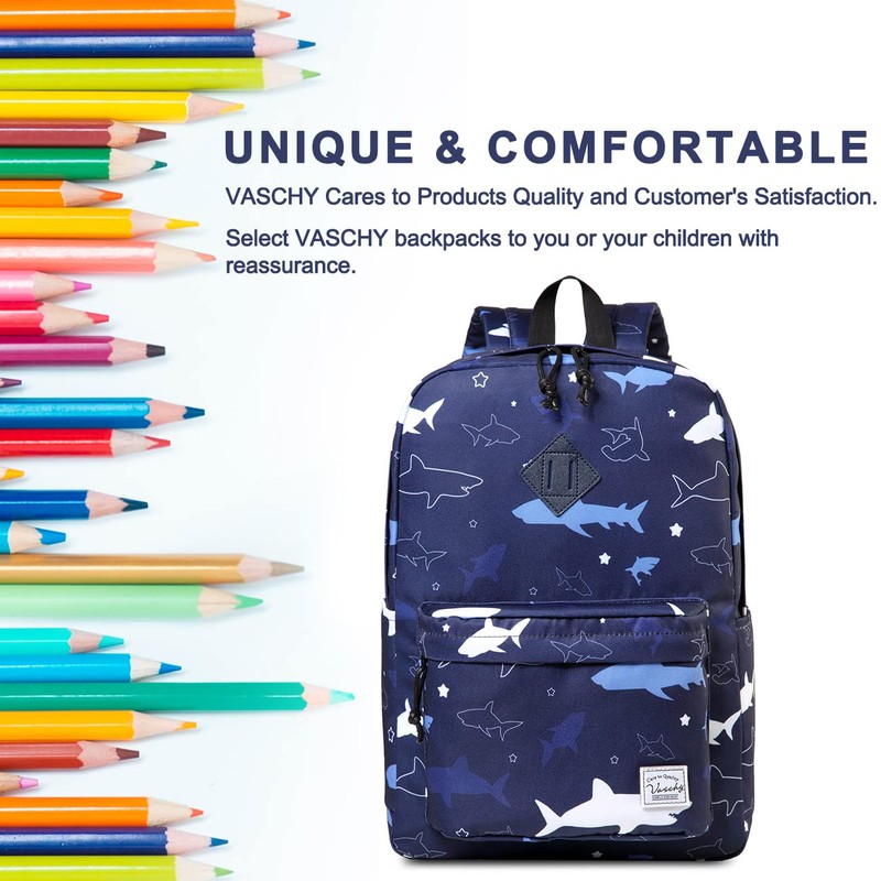 🐬PERFECT DAYPACK: Recommended Age Grading: 3 Years+. The Vaschy basic backpack is a ultra lightweight simple backpack suitable for those who like casual. Its durable material is recommended for daily use, day-trips, traveling, hiking, school, camping. It’s an ideal gift choice for children/kids on back to school, birthday, new year, Christmas.