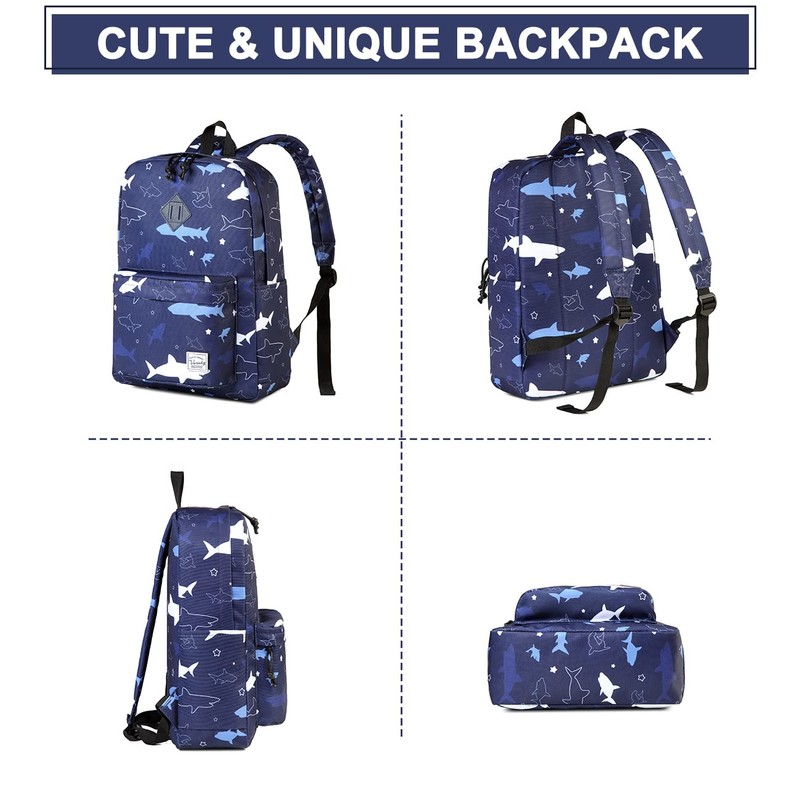 VASCHY Backpack for School, Lightweight Water Resistant Bookbag Casual Daypack for Man/Boys Shark