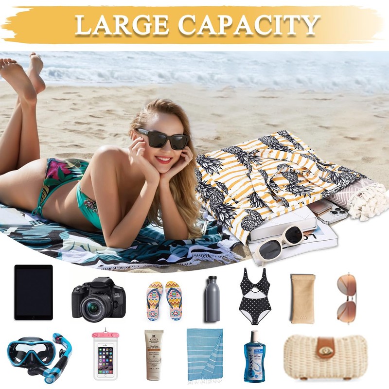 🏝️IDEAL GIFT: Unique design brings a cheerful vibe that making joyful moments. This waterproof beach bag is perfect for women short trips, shopping, gym sports or other outdoor indoor activities. It is a great gifts for birthday,Christmas.