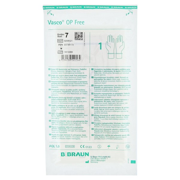 VASCO Surgical Gloves Free PF, Latex-Free, Sterile, Size 7.5