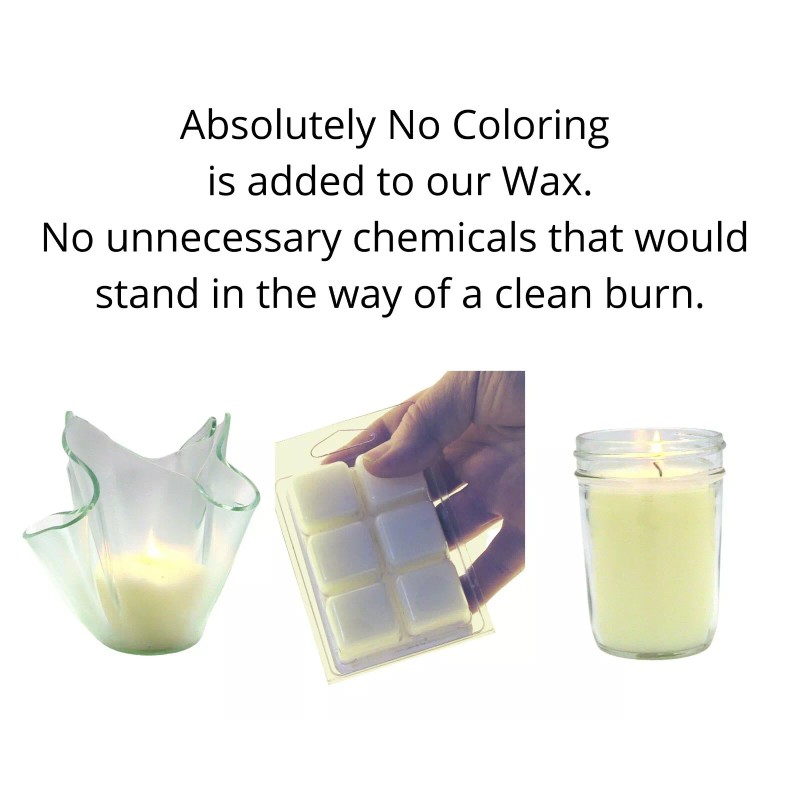No coloring is added to the wax - no unnecessary chemicals to get in the way of a clean and enjoyable burn.