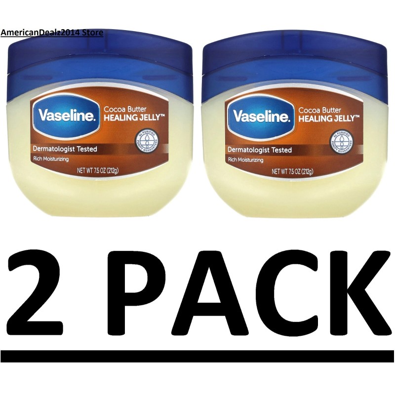 Vaseline 2 PACK - Vaseline Cocoa Butter Healing Jelly, Moisturizing 7.5 oz (Total 15 oz)