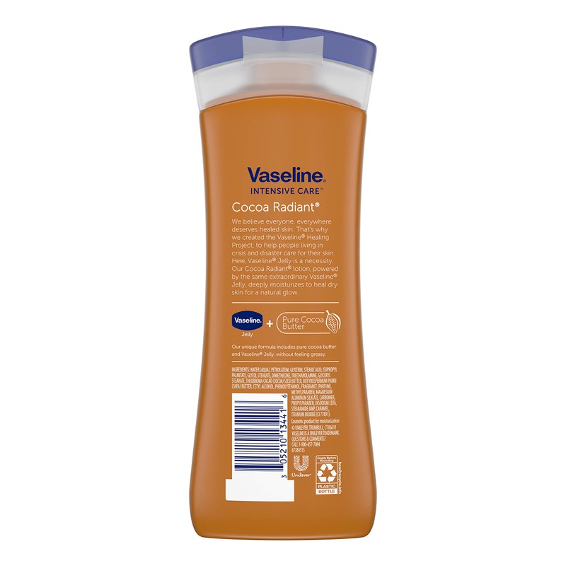 - Vaseline Intensive Care Cocoa Radiant Hand and Body Lotion moisturizes dry skin and dry hands