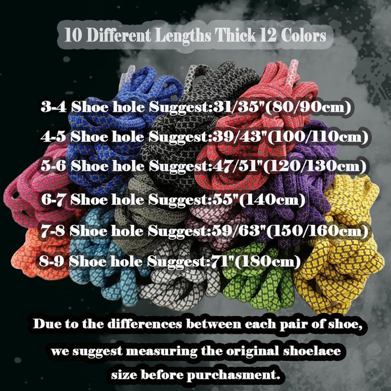 - Product Package: 1 Pair pack (2 laces) 12 colors 10 lengths to choose from.