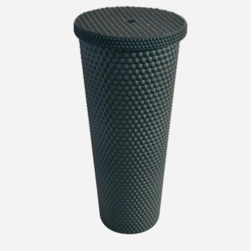 Vaso Mosaico Térmico Doble Pared 24oz Con Tapa Y Popote (Negro Mate)