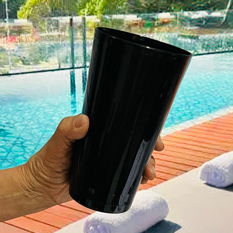 • 【Set de vasos negros de 6pz 】Son vasos de plástico polipropileno lisos, apilables e irrompibles con acabado que asemeja vasos glitter