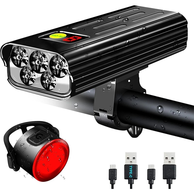 VASTFIRE Super Bright LED Mountain Bike Headlight Warning Tail Light Rechargeable