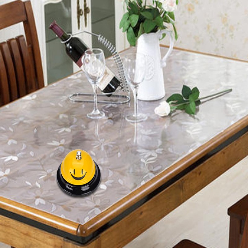 Vastsea Pack of 2 Reception Bell, Table Bell, Smiley Pattern, Metal Iron Cover, Service Bell, for Restaurant, Kitchen, Hotels, Bars (Yellow)