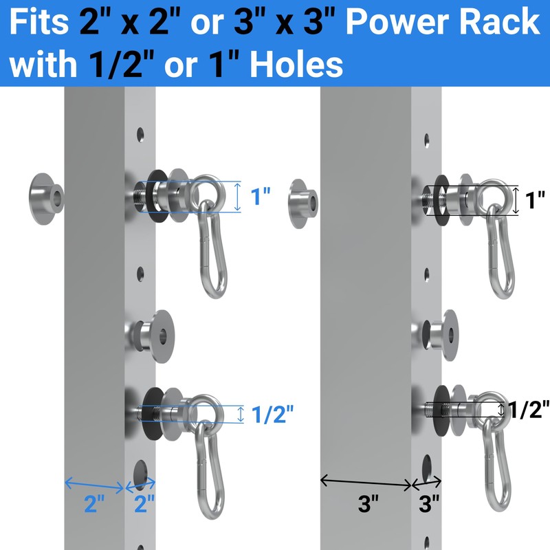 - 【ZERO-TOOL INSTALLATION & INSTRUCTIONS】Detailed instructions included for effortless assembly. Hand-tightened screws + carabiner system ensure instant attachment to 2x2", 2x3", 3x3" power racks (1/2"-1" holes).