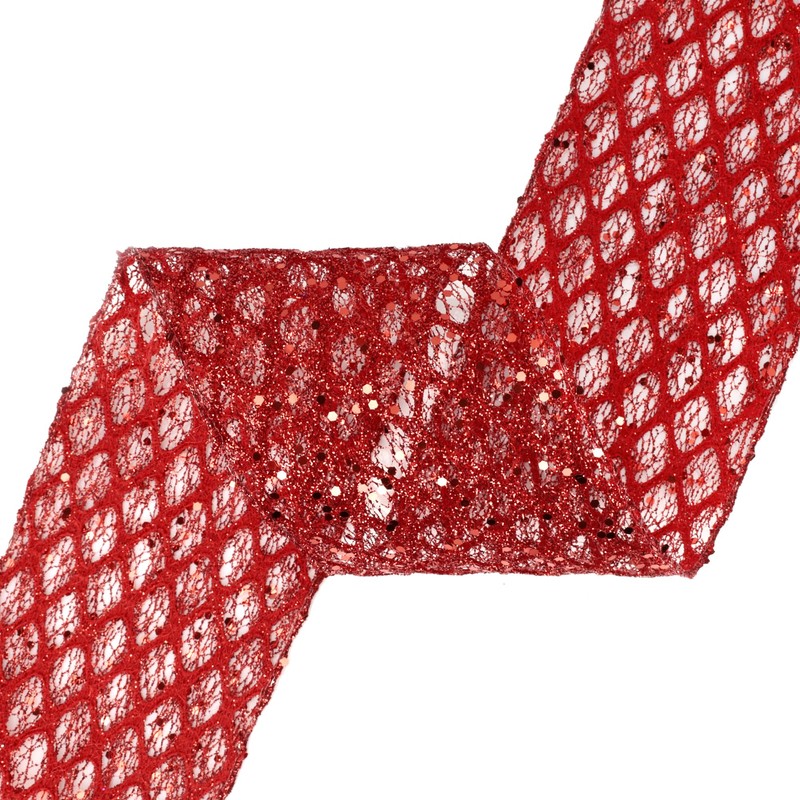 VATIN 4" Red Christmas Ribbon, Red Glitter Mesh Diamond Web Sequin Dots Wired Christmas Ribbon for Gift Wrapping Bow Making Wreath Supply-10 Yards