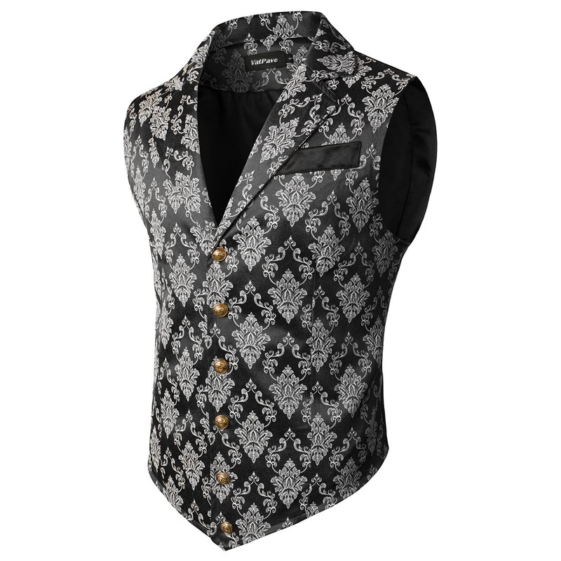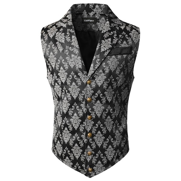 VATPAVE Mens Victorian Suit Vest Steampunk Gothic Waistcoat Large SU14 Black White