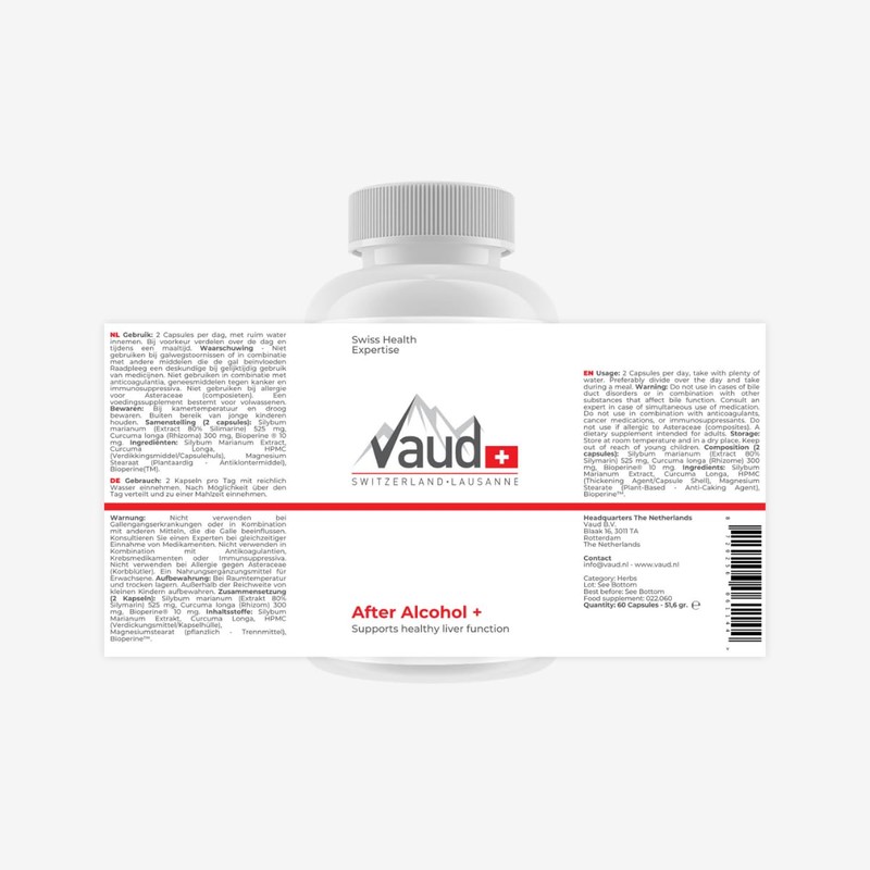 Vaud AFTER ALCOHOL C Anti Kater Kapseln mit Mariendistel, Curcuma & Bioperine? C Leber Detox & Regeneration nach Alkohol C Hochdosiert, Vegan, Laborgepr1ft, Swiss Quality