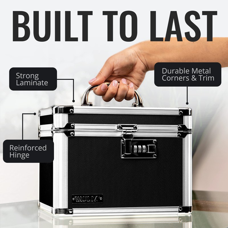 • PORTABLE - The Vaultz locking storage box is a lightweight yet reliable solution for your safety needs. It's the perfect size for travel, but also works as a security box for home or office use.