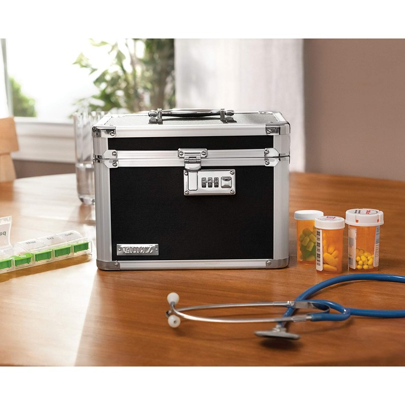 Vaultz Combination Lock Box - Secure Safe for Documents, Valuables, Medicine & Money - 10 x 7.25 x 7.75 Inch - Black