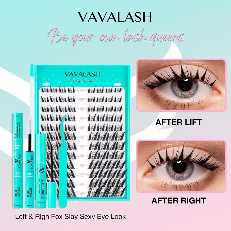 VAVA BEAUTY Winsome DIY Lash Cluster Kit, Lash Bond&Seal, Remover, Springtok Lash Tweezer for DIY Eyelash Extension at Home For Girl Make up Makeup Cosmetic Eyelashes Extensions:_Misty kit