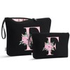 Vavabox 2 Pcs Initial Toiletry Bags Set,Birthday Gifts for Women,Travel Portable Toiletry Bag with Handle (F, Black)