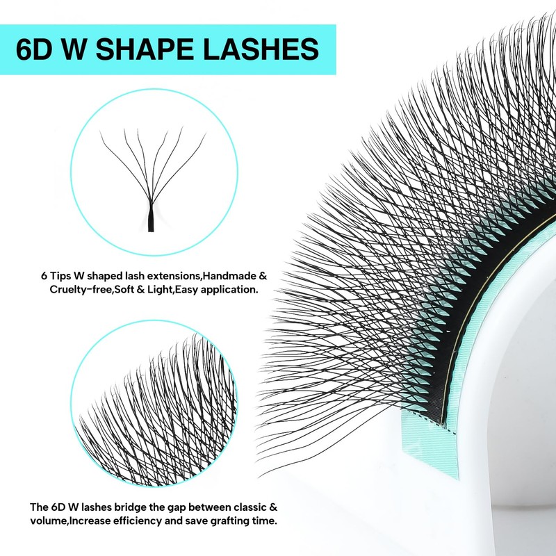 • Unique Look: Special W shaped makes extension look more graceful and fluffy.The W 6D lash fans are made of the high quality black PBT silk material, cruelty-free,very soft and light.