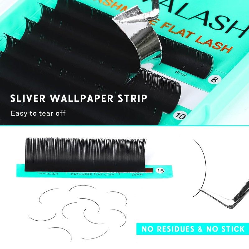 VAVALASH Cashmere Faux Mink Ellipse Flat Lashes 0.15 0.2mm Thickness C D Curl 6-16mm Length Super Soft Lightweight Classic Lash Extensions Super Matte Split Tip Natural Eyelash Extensions