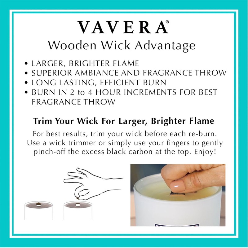 - VAVERA WOODEN WICK: Wooden wicks offer the ultimate candle ambiance. Enjoy a larger flame, superior fragrance throw. A gentle crackle makes for self care gifts for women, house warming gifts new home.