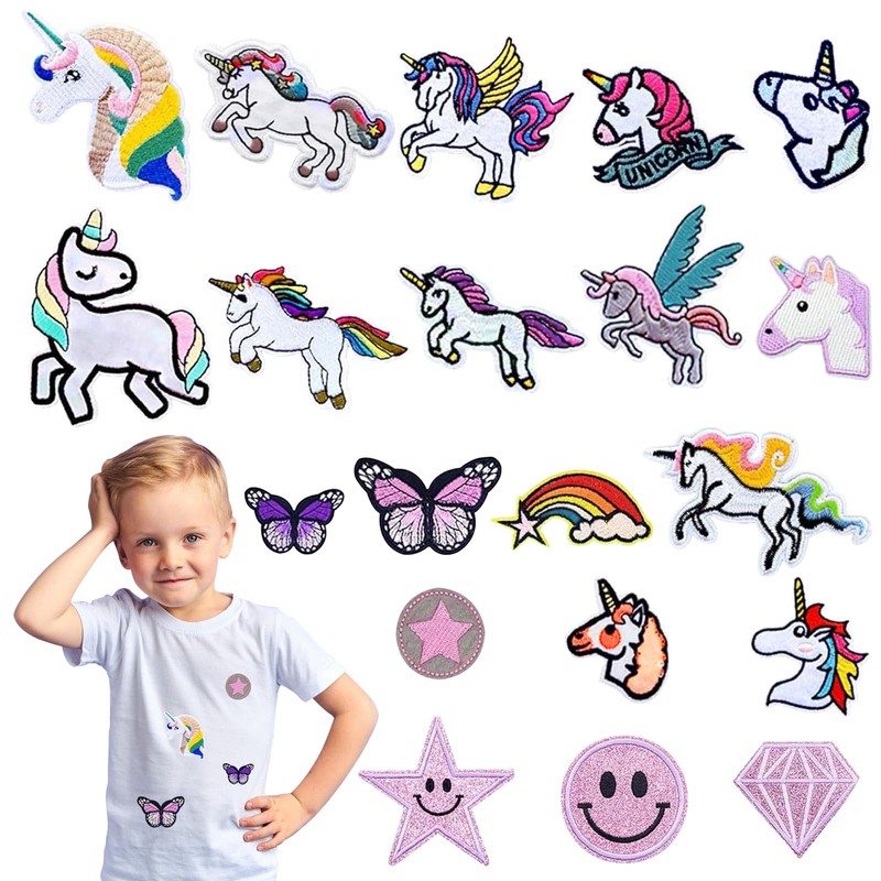 VAVICRAP Unicorn Iron-On Patches, Pack of 20 Iron-On Patches, Girls Unicorn Iron-On Patches, Iron-On Patches, Children's for T-Shirt, Jeans, Clothing, Bags, Hats
