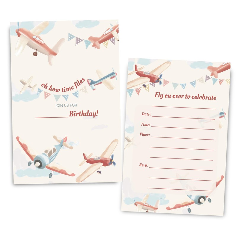 - 30 Sets with Envelopes - This airplane Birthday Invitations includes 30 invitations and 30 envelopes