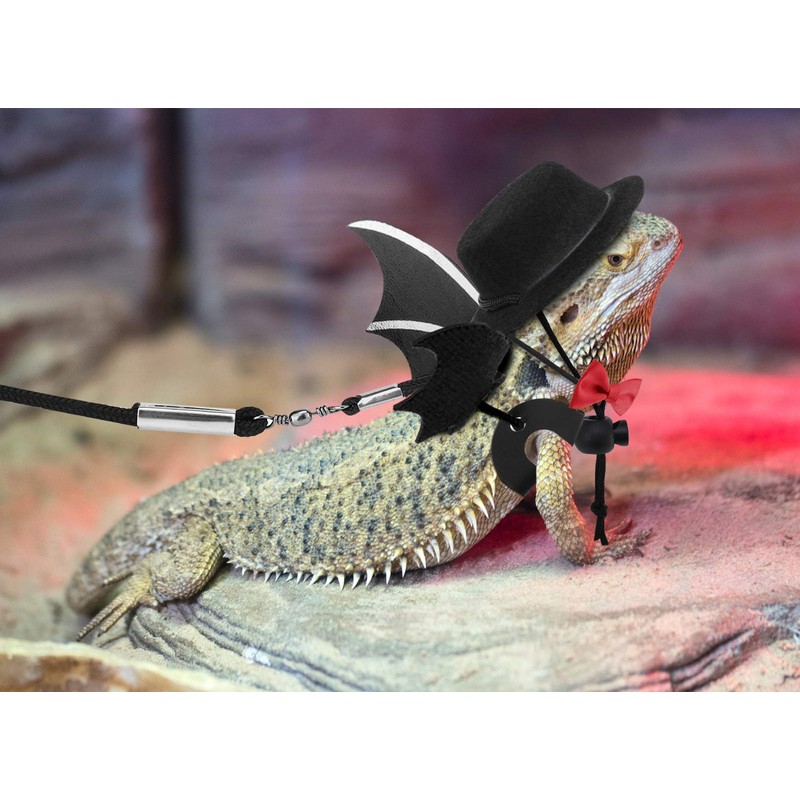 VavoPaw Bearded Dragon Lizard Leash Harness (S/M/L 3 Pack), Adjustable Leash Bat Wings Costume Accessories with Hat & Bow Tie Collar for Lizard Reptile, Gecko, Iguanas, Amphibians & Small Animals