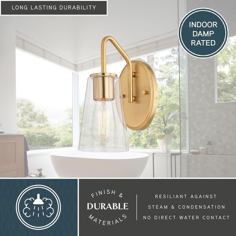VAXCEL Beverly 1-Light 4.75 inch Wide Muted Brass Gold Transitional Bathroom Vanity Lighting Fixture, Clear Glass Shade, Dimmable, LED Compatible, Reversible Wall Mounted Steel Sconce