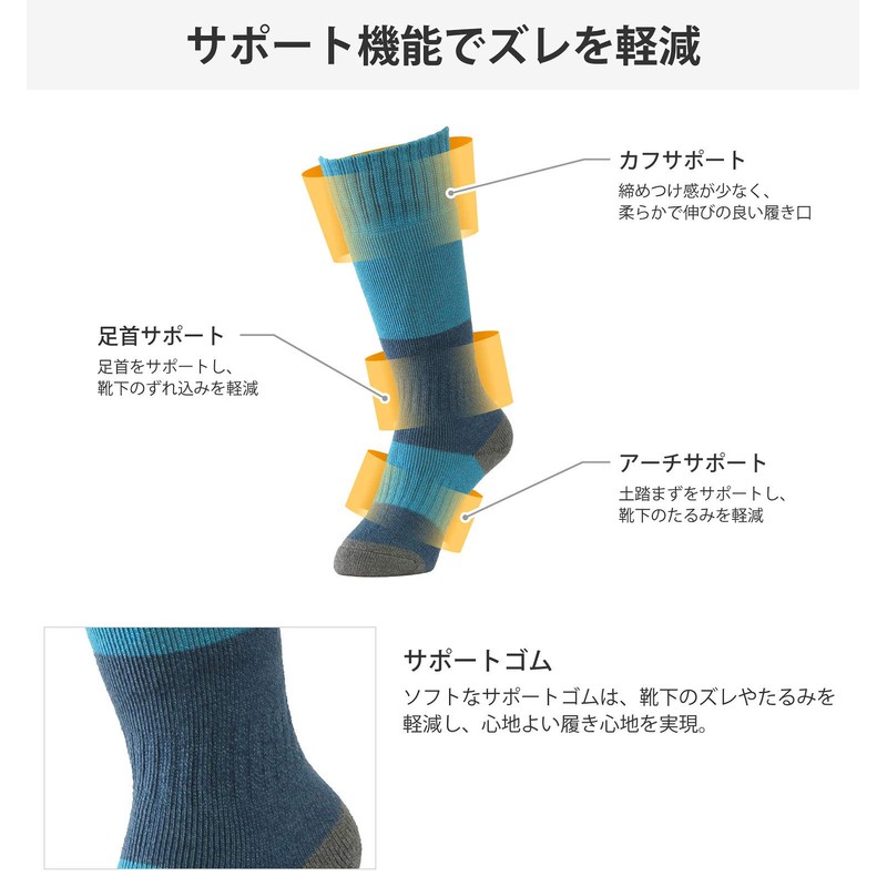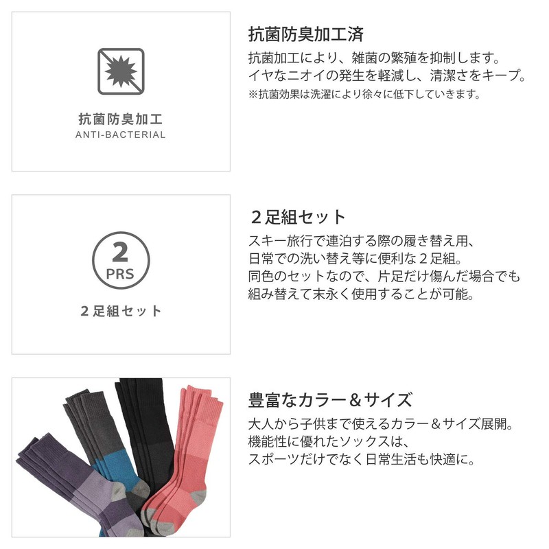 VAXPOT VA-1754 Snowboard Ski Socks, Set of 2, Thick, Kids, Junior, Women's, Men's, Antibacterial, Odor Resistant, Warm, Pile Knitting, Support Function