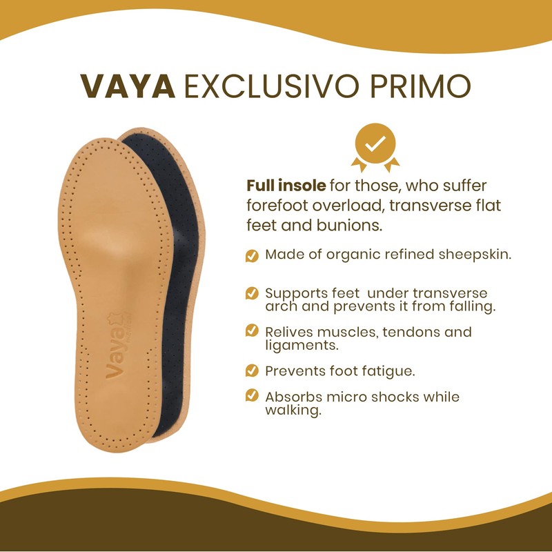 Then Vaya insoles are just the thing for you. The orthotic insoles are made of soft and delicate organic lambskin, with a breathable underlayer, and the great design allows the support of the