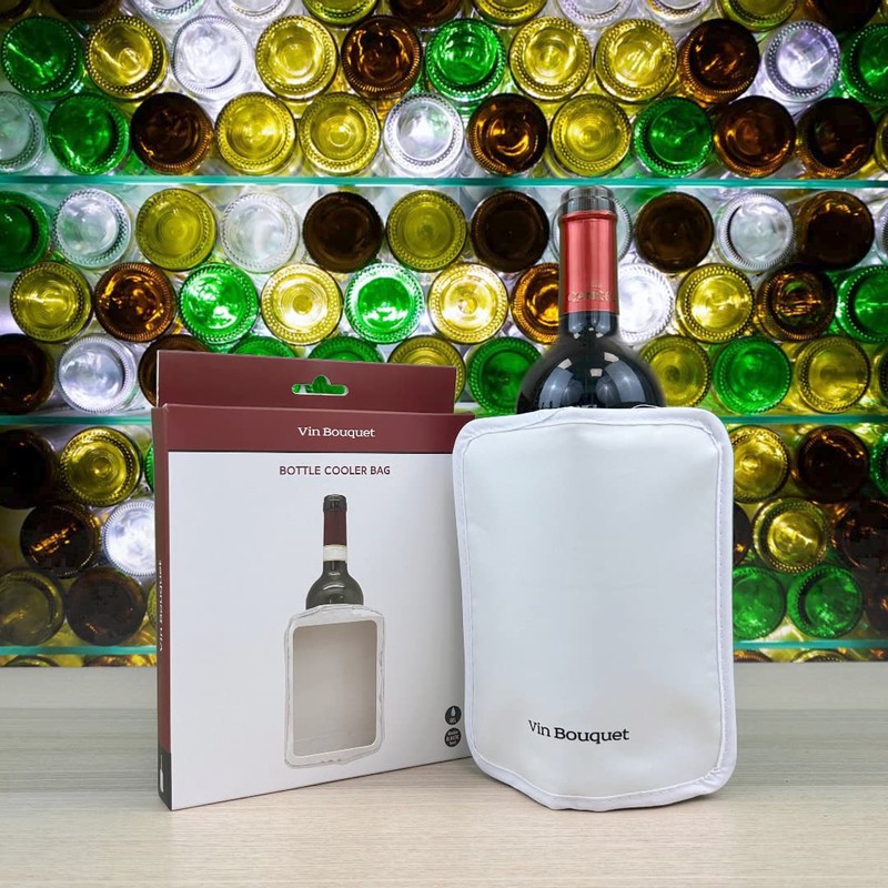 - Self-adjusting gel cover that is removed from the freezer and placed on the bottle to be cooled