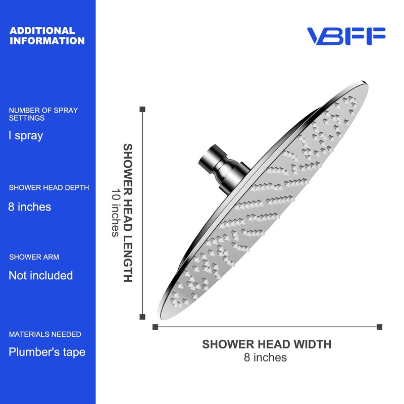 VBFF-Shower Head,rain shower head, 8 inch- Round Shower Head, 1.8 GPM Flow Rate, rainfall showerhead,VBFF11 (Chrome)