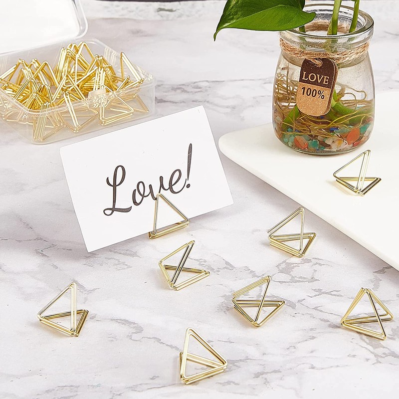 - Premium material: This product is made of high-quality metal material, is durable and the slot can hold business cards or table number cards in place. The kit contains 50 pieces of triangle clips, the quantity can meet your different requirements on different occasions.