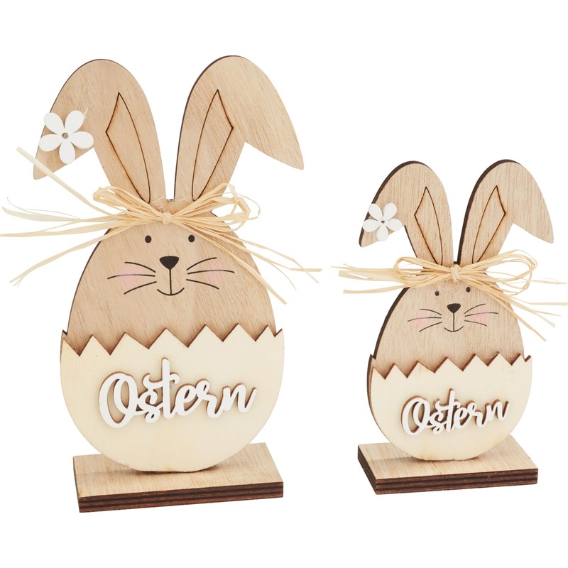 VBS Holz-Steckmotiv Easter bunnies 12,5-16,5 cm, 10 Teile, Unbemalt, Furniert, Einseitig dekoriert, Ostern, Warmweiß