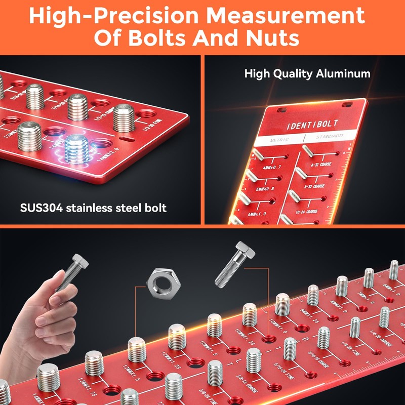 - Sturdy and Durable: The thread checker is made of durable SUS304 material; all pillars are precision machined to ensure that each bolt and thread meets standard specifications, allowing you to easily identify different nuts and bolts, even if it's your first time using it!
