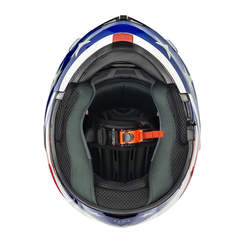 - One button release mechanism for front chin bar, Coolmax cheek pad & OTG ready