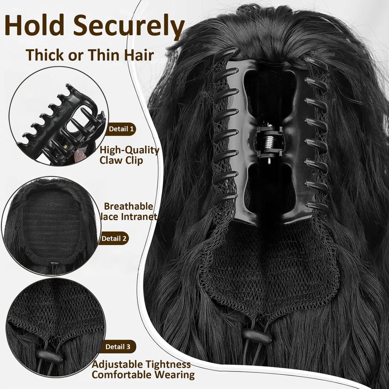 - Two Ways to Wear: it can be either a clip ponytail or a drawstring ponytail. The claw clip can be took out.Claw clip can hold small and medium amounts of hair and is securely worn, and the drawstring ponytail can hold more hair