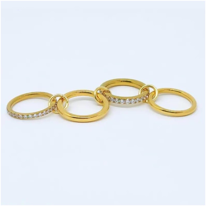 - Hypoallergenic: The multi-link rings are made of 14 carat gold-plated brass and are set with sparkling zirconia. Each ring is hand polished and offers high wearing comfort and exquisite workmanship. The material is tarnish and corrosion resistant and ensures long-lasting beauty.