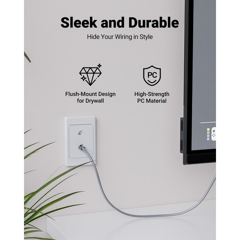 • CLEAN LOOK, TOUGH BUILD: Mount the RJ45 wall plate flush on drywall with the included screws and say goodbye to messy cables! The sleek white finish blends into modern spaces, while PC material resists impacts and aging for a setup that lasts