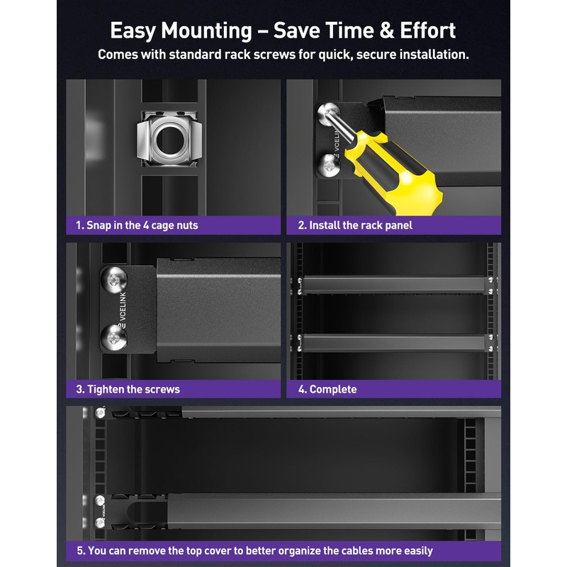 - NO PROFESSIONAL TOOLS NEEDED: Get professional results in 90 seconds! Just tighten the included screws to complete the installation! Securely mount it to any 19" rack without complex steps—perfect for busy IT teams