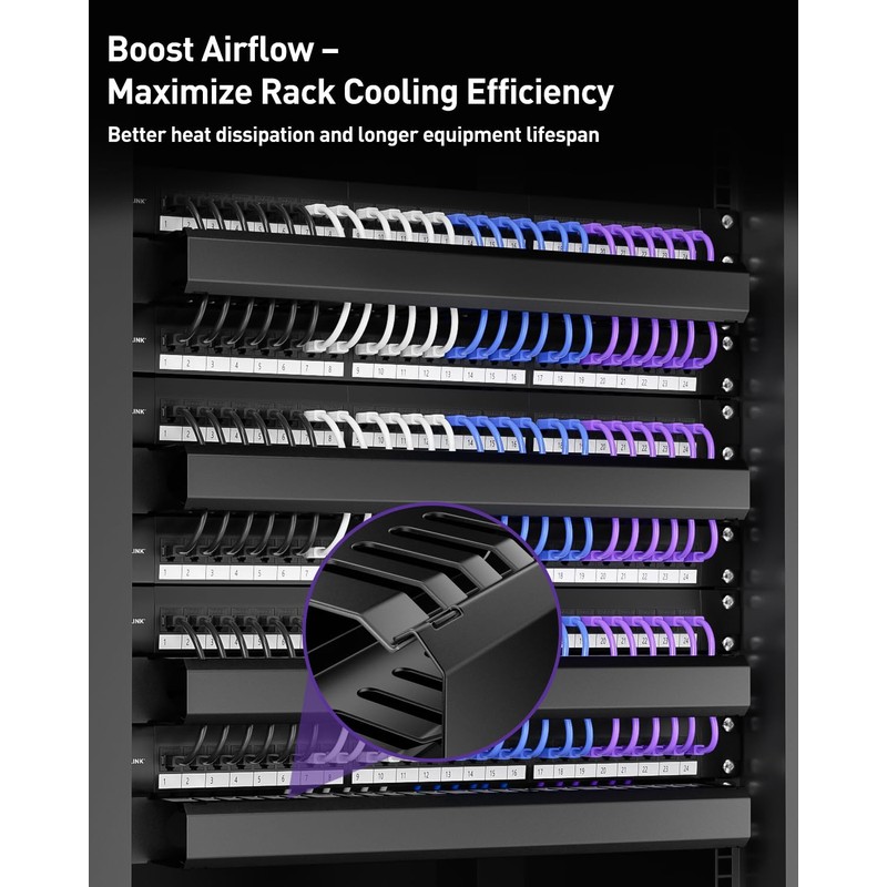 - EFFICIENT CABLE ORGANIZATION: Maximize airflow and streamline maintenance with our 19-inch 1U rack mount cable organizer. Features 24 high-capacity slots to neatly separate and route bulk cables, boosting equipment stability and safety while reducing clutter