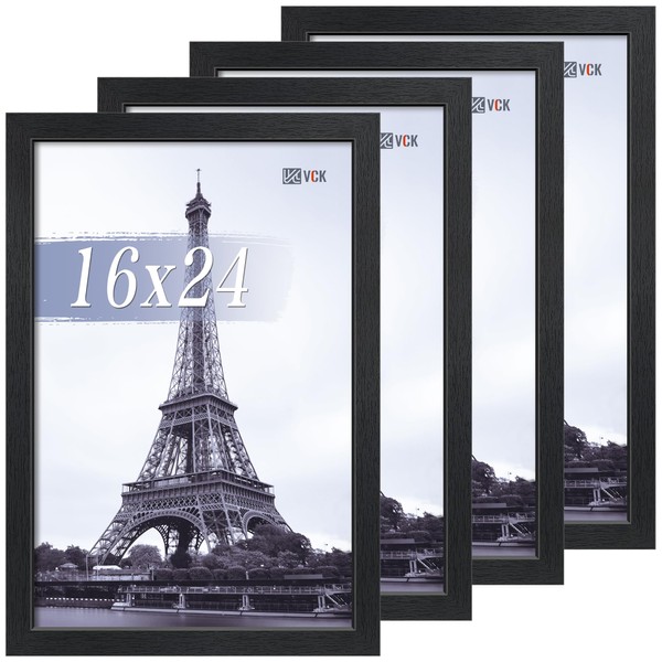 VCK 16x24 Poster Frame Set of 4 - Black, Gallery-Quality Wood Picture Frames, 1.1-Inch Wide Border, Polished Plexiglass, Vertical or Horizontal Wall Display for Photo/Art/Prints, Black