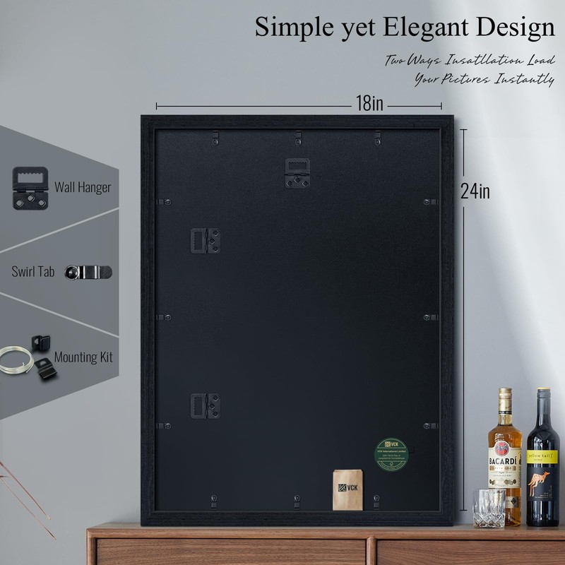 - Multipurpose Design: This flexible frame is designed to display 18x24 without mat or 16x20 with mat photos with ease. Innovative design allows effortless photo insertion and switching between portrait and landscape orientations.