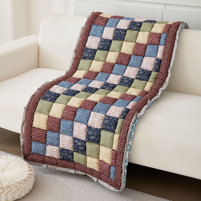 VClife Dog Couch Cover Blanket, Non Slip Thick Sofa Cover Furniture Protector Pet Mat for All Season, Lovely Plaid Patchwork Couch Covers for 2 Cushion Couch Sofa, Chocolate Blue, 27.6"x59.1"