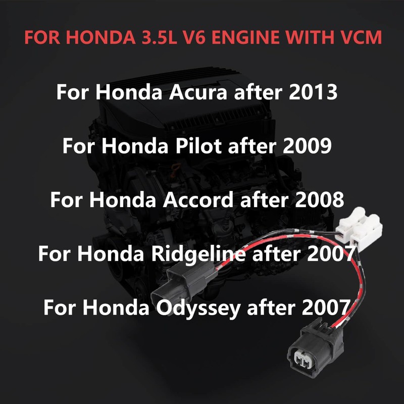 - Compatible With: This VCM harness kit is compatible with Honda Acura after 2013, for Honda Pilot after 2009, for Honda Accord after 2008, for Honda Ridgeline after 2007, for Honda Odyssey after 2007. Compatible with Honda 3.5L V6 Engine with VCM.